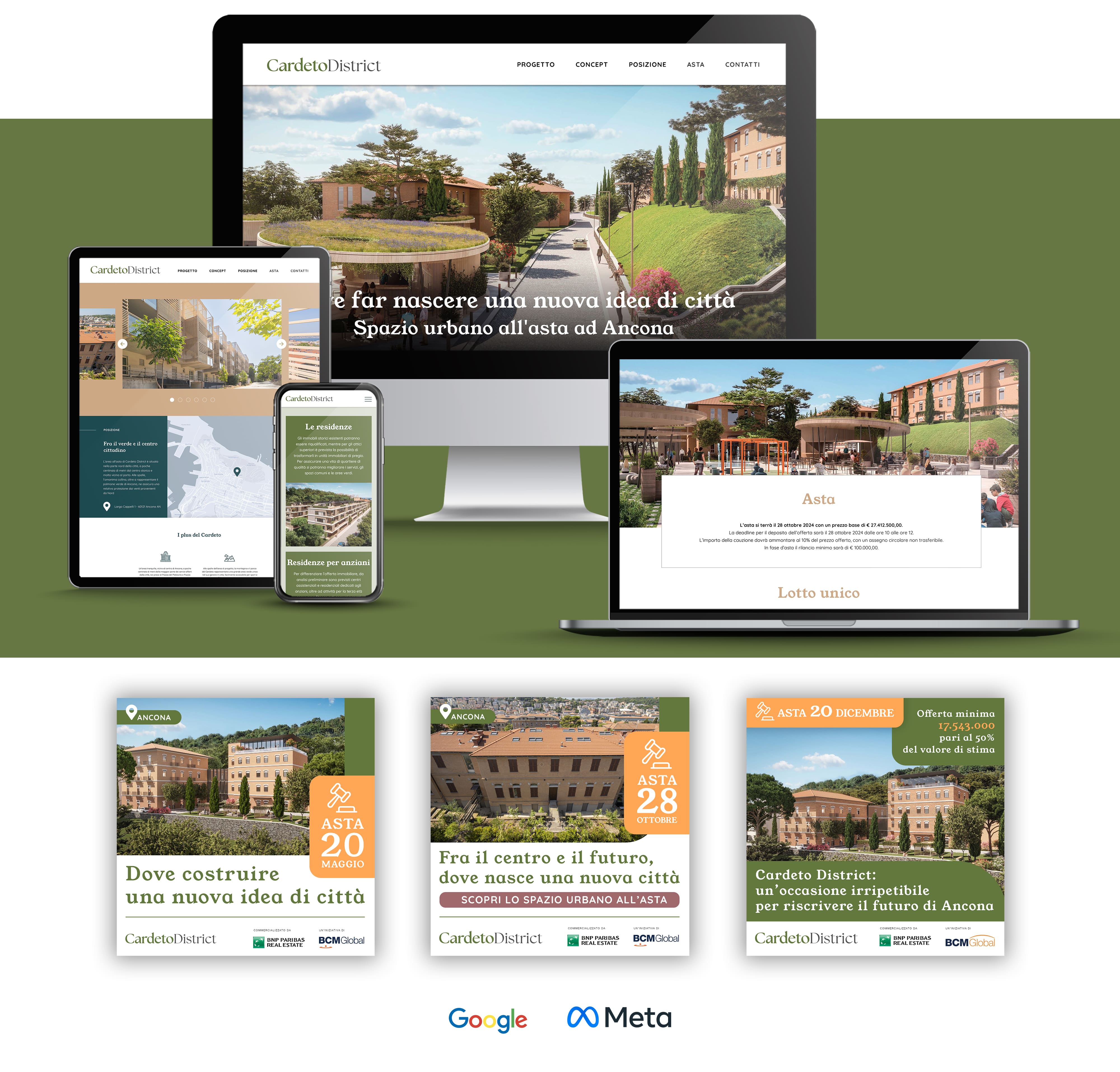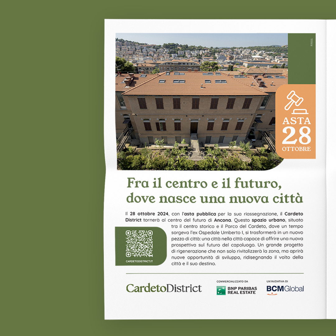 Il messaggio della campagna stampa è basato sulla rigenerazione urbana e sul rilancio che Cardeto District rappresenta per il futuro di Ancona, presentando l'asta come un’iniziativa che vuole ridisegnare il volto della città, aprendo nuove opportunità di sviluppo.