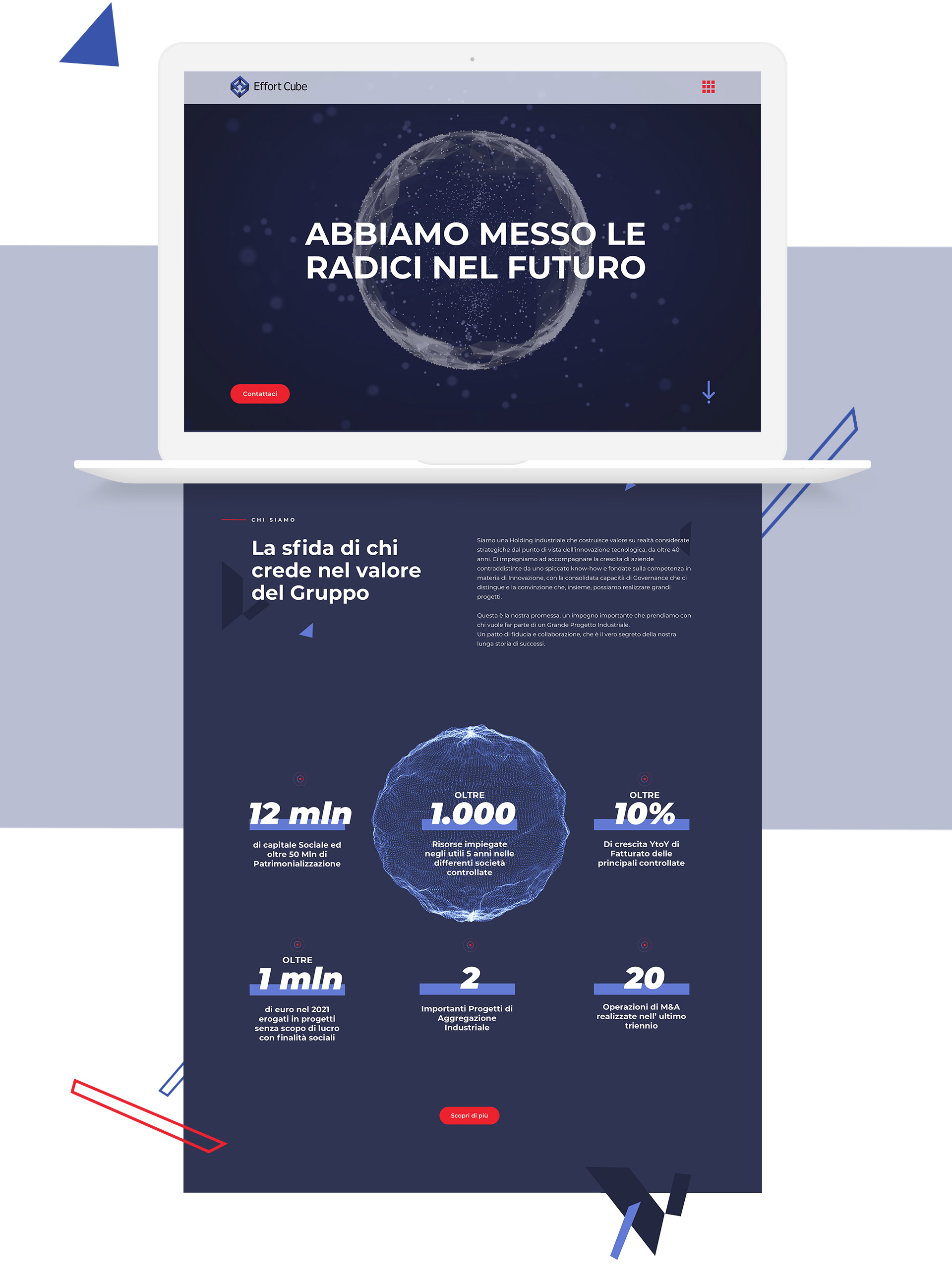 Il sito di Effort Cube rappresenta la sintesi di semplicità ed eleganza. Realizzato per comunicare i valori della holding e accrescere l'awareness del brand, racchiude una parte istituzionale e una sezione dedicata alle case histories.