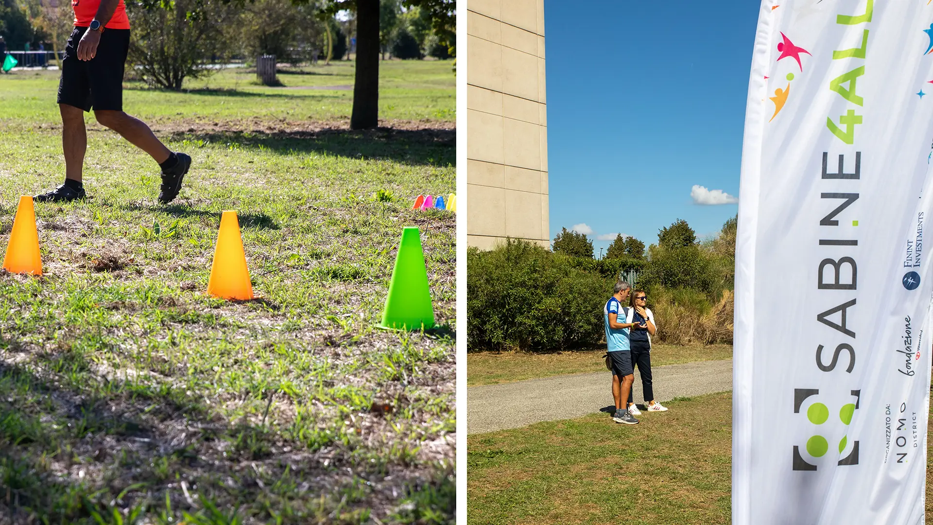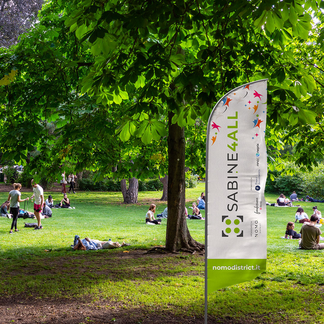 Sabine 4ALL | Sportday è un evento gratuito di sport, inclusione sociale e salute organizzato nel Parco delle Sabine a Giugno e Settembre da No.Mo. Il logo Sabine 4ALL è composto da un simbolo nella parte superiore che indica aggregazione e inclusione e dal nome nella parte inferiore, realizzato con lo stesso stile grafico del marchio No.Mo proprio per ricordare la connessione tra i due brand.