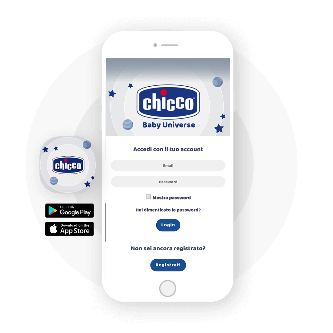 Abbiamo sviluppato un'App per Ios e Android che consente il dialogo tra la device e i prodotti del mondo Chicco (Termometro, Bilancia, ecc).