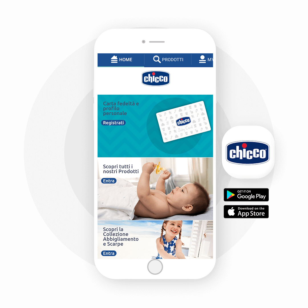 Pixell ha disegnato UI/UX e sviluppato in Titanium l’App My Chicco, che consente l’acquisto dei prodotti dell’azienda del gruppo Artsana e l’accesso a numerosi servizi dedicati: verificare il tracking degli ordini, utilizzare buoni sconto, raccogliere punti e richiedere regali attraverso la BabyCard. L’App consente poi l’accesso alla lista dei negozi presenti sul territorio e da la possibilità di ricevere assistenza sugli ordini effettuati. Il progetto, sviluppato in collaborazione con B2X, dialoga attraverso API con l’e.commerce.